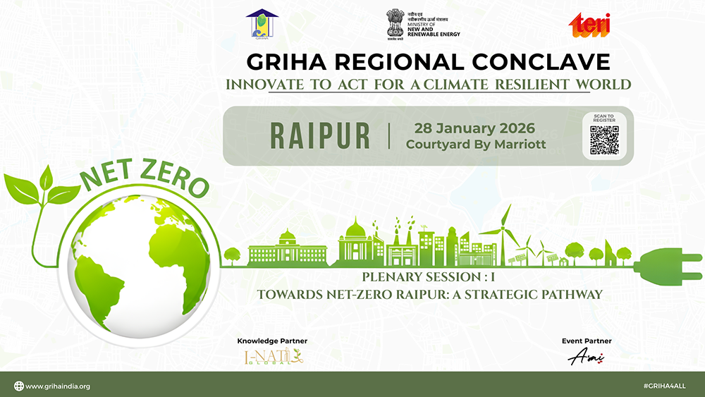 GRIHA Council is organizing the 9th GRIHA Regional Conclave on 28 January 2026 in Raipur, Chhattisgarh, centered around the theme “Innovate to Act for a Climate Resilient World”. The conclave will serve as a dynamic regional platform to translate climate ambitions into tangible, on-ground action by spotlighting innovation, collaboration, and region-specific solutions.